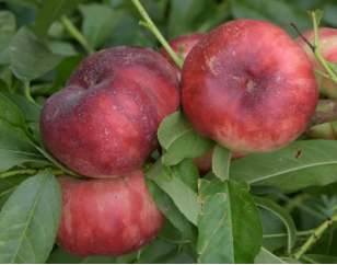 中油蟠12号,白肉油蟠桃,果实扁平形,平均单果重115克,底色绿白,果面近全红,着红色晕和斑纹。肉质为硬溶质,风味脆甜,可溶性固形物13.5%,脆甜与多汁平衡。品质上,粘核,丰产。花型为蔷薇型,自花结实,郑州地区5月底成熟,耐贮运性中等,适宜在城市周边地区发展,宜七八成熟采摘。